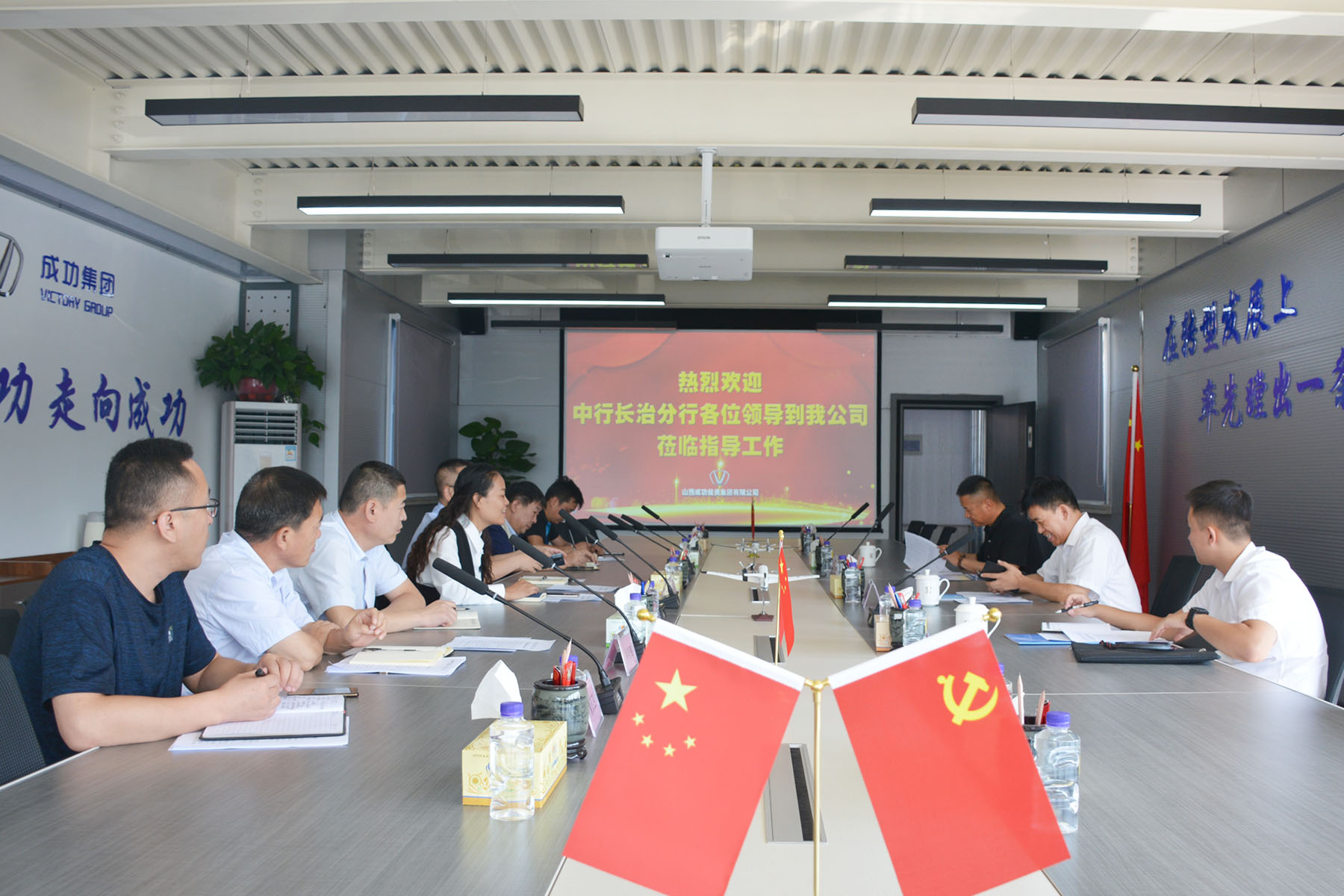 8月27日上午,中行长治公司部主任杨长青一行三人专程到永利yl23411进行座谈。在集团总部二楼会议室,永利yl23411发展规划部部长高秋颖、资产财务部部长赵毅、成功汽车事业部总经理许宏泉、成功煤炭常务副总经理靳斌、成功通航副总经理郑全胜及相关负责人就合作项目进行了对接。