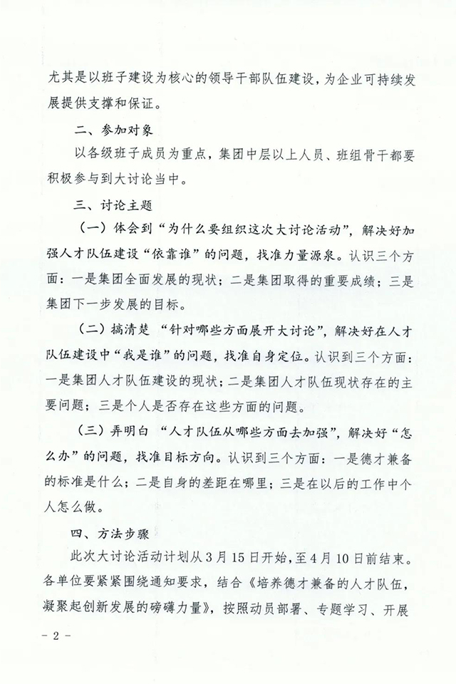 【重要通知】关于在集团范围内组织开展“加强德才兼备的人才队伍建设”大讨论活动的通知