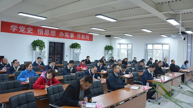最后,党委书记陈建法作动员讲话。他指出,一、提高政治站位,深刻领会党史学习教育重大意义。开展党史学习教育,是党中央因势而为作出的重大决策,也是砥砺初心使命奋进新征程的内在要求,更是是坚定信心深化企改的必然要求。二、抓好融合渗透,确保党史学习教育取得实效。要在旗帜鲜明讲政治上见成效;要在不断改进工作作风上见成效;要在提升公司高质量发展上见成效。三、加强组织领导,推动党史学习教育走深走实。要带头履行领导责任;要注重创新方式方法;要强化督促检查;要加强宣传引导。他强调,各总支、支部会后要组织再动员再部署,切实把党史学习教育贯彻落实。要求各总支、支部设计完善党建工作活动室,使生产经营工作和党建工作紧密集合,相互促进,相互渗透。加强入党积极分子培训,培养德才兼备的党员后备力量,为建设百年成功、绿色成功贡献应有的力量,以优异的成绩迎接建党一百周年!