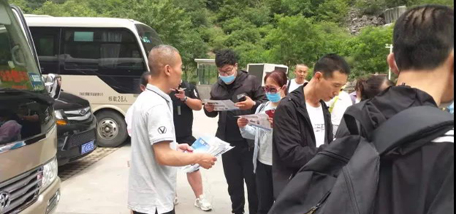 我们的这一站,就选择在美丽的平顺通天峡!天然舞台已为我们搭建,同志们,闪亮登场啦!如何做到文明发放、游客收;乐意宣传、有心帮?小组人员结合现场实际情况,确定了停车点、入口处、餐饮棚三个点位,并灵活运用”巧借东风”,为精准发放、形象发放、顺畅发放提供了可靠支撑。下面听我们娓娓道来……