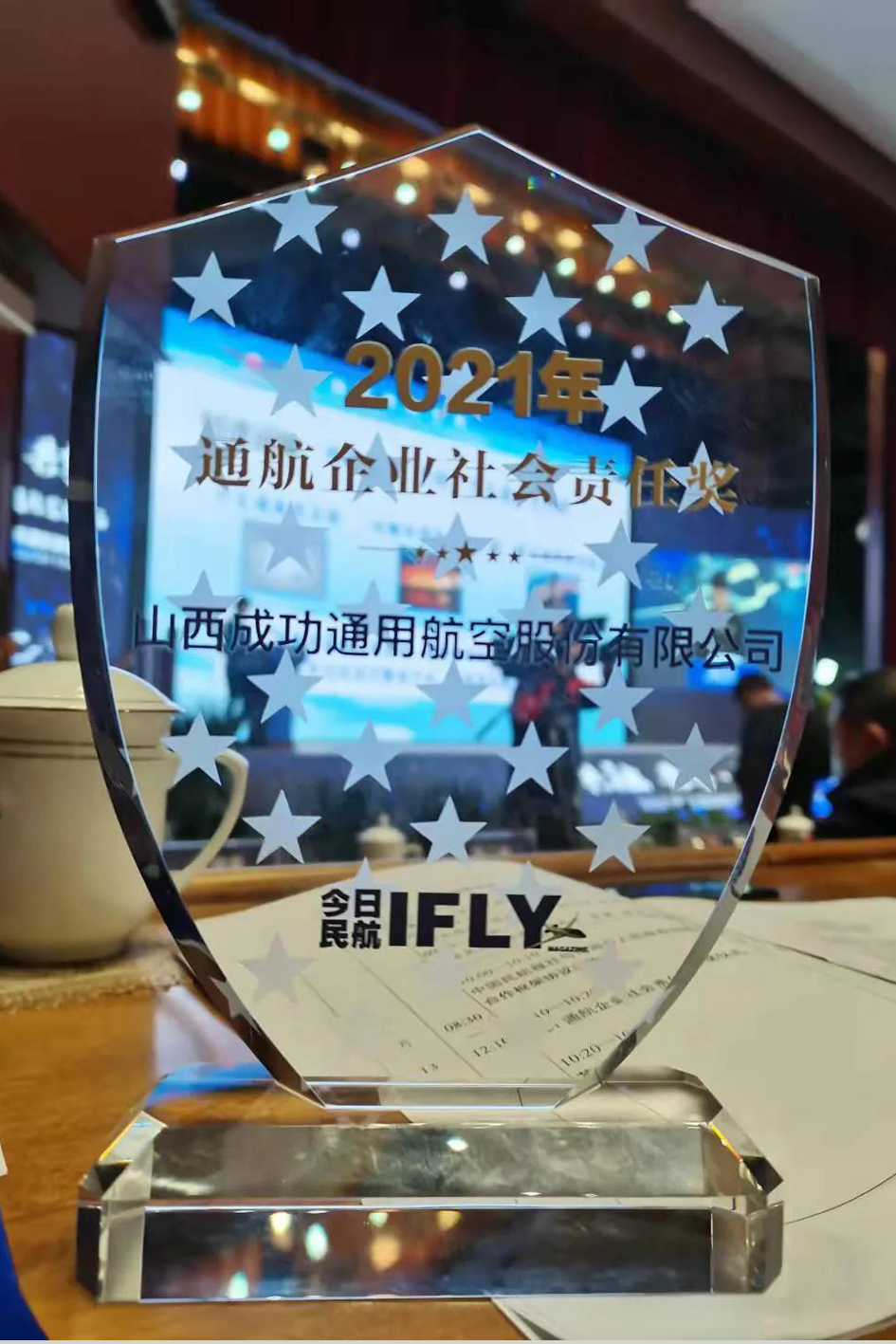 2021年10月13日,在乌海举行的2021年通航企业社会责任颁奖仪式上,成功通航总经理王欢同其他11名通用航空企业代表共同站在领奖台上,在热烈的掌声中,接过了体现着成功人使命与担当的“2021通航企业社会责任奖”奖杯。