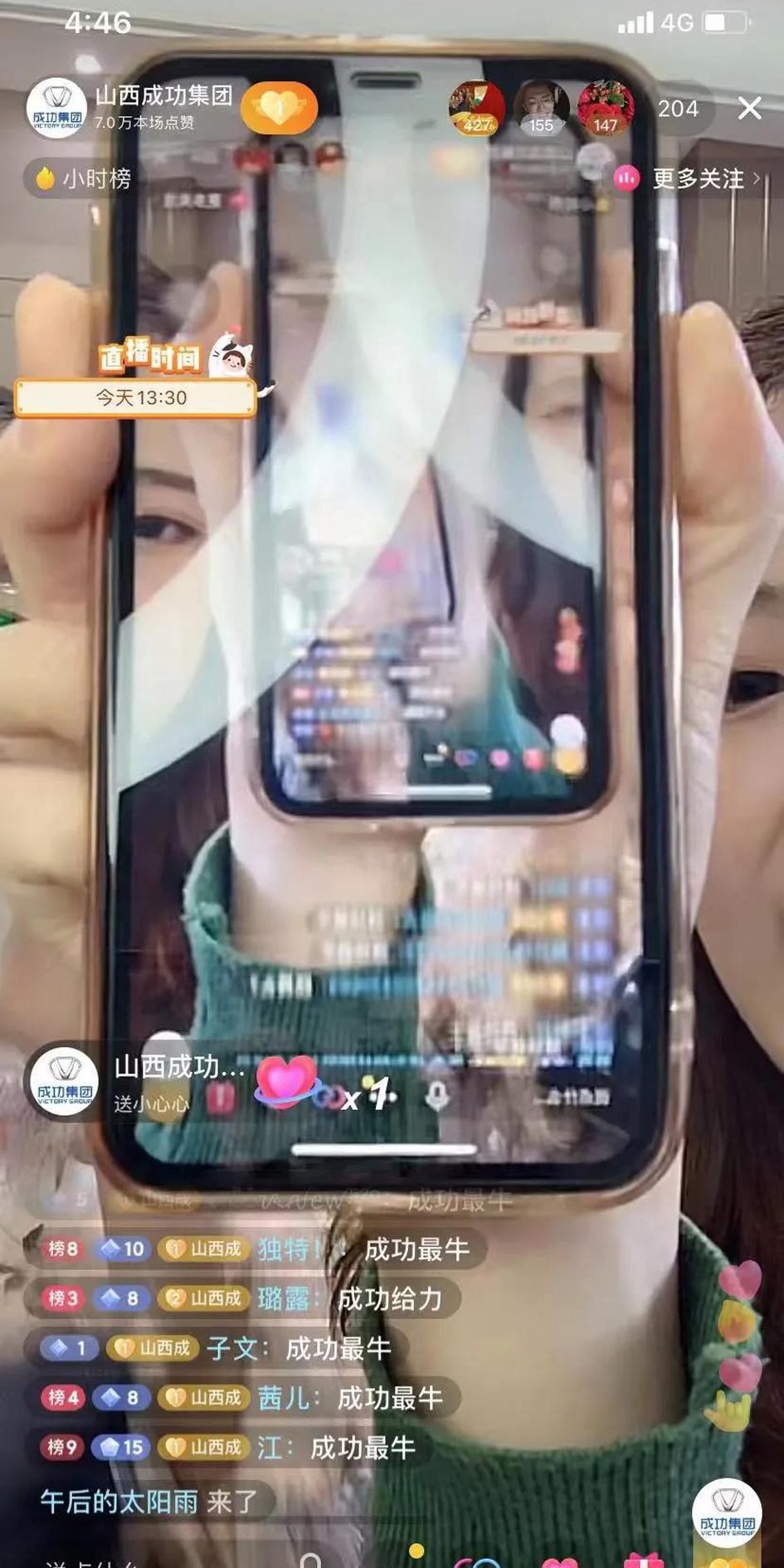 作为提升品牌知名度,打造成功新亮点,宣传成功汽车新车型预热活动,成功汽车也开展了直播活动,并准备了水杯、玻璃水、护颈枕等丰富礼品。集团直播过程中与成功汽车展开连线共同宣传增加人气取得良好的效果;成功汽车全天直播从上午8点持续到下午18点,通过直播展示了成功汽车生产流程、产品行驶体验、老车主用车经验、直营店介绍,与海外巴萨连线展示海外风土人情,取得累计观看6700余人、峰值在线370人、收获粉丝1000余人的良好成绩。