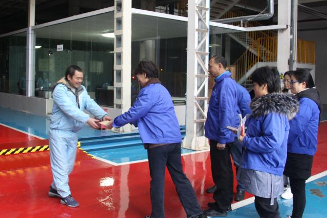 在遵义工厂,因遭受重大疾病和突发情况等原因造成家庭生活困难的员工有10余人。慰问小组来到车间员工工作的岗位,姜总和张主席亲自把慰问金一一发放到每位困难员工手中,鼓励他们要树立勇敢生活的信心,要迎难而上,战胜困难。同时,转达了集团和公司领导对他们的诚挚问候,并提前送上节日的问候和新春的祝福。