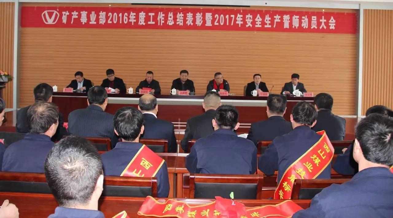 2月8日下午,矿产事业部在首阳山煤业召开了“2016年工作总结表彰暨2017年安全生产誓师动员大会”。集团常务副总裁吕彦青、副总裁赵安平、总裁助理狄国文;矿产事业部总经理宋建明、副总经理李法俊、马国军、段长明在主席台上就座;集团总部、矿产事业部各职能部门和所属西山、西掌、太义掌、首阳山煤业的负责人以及2016年受表彰的先进集体、模范个人代表230余人参加了会议。会议由矿产事业部副总经理李法俊主持。