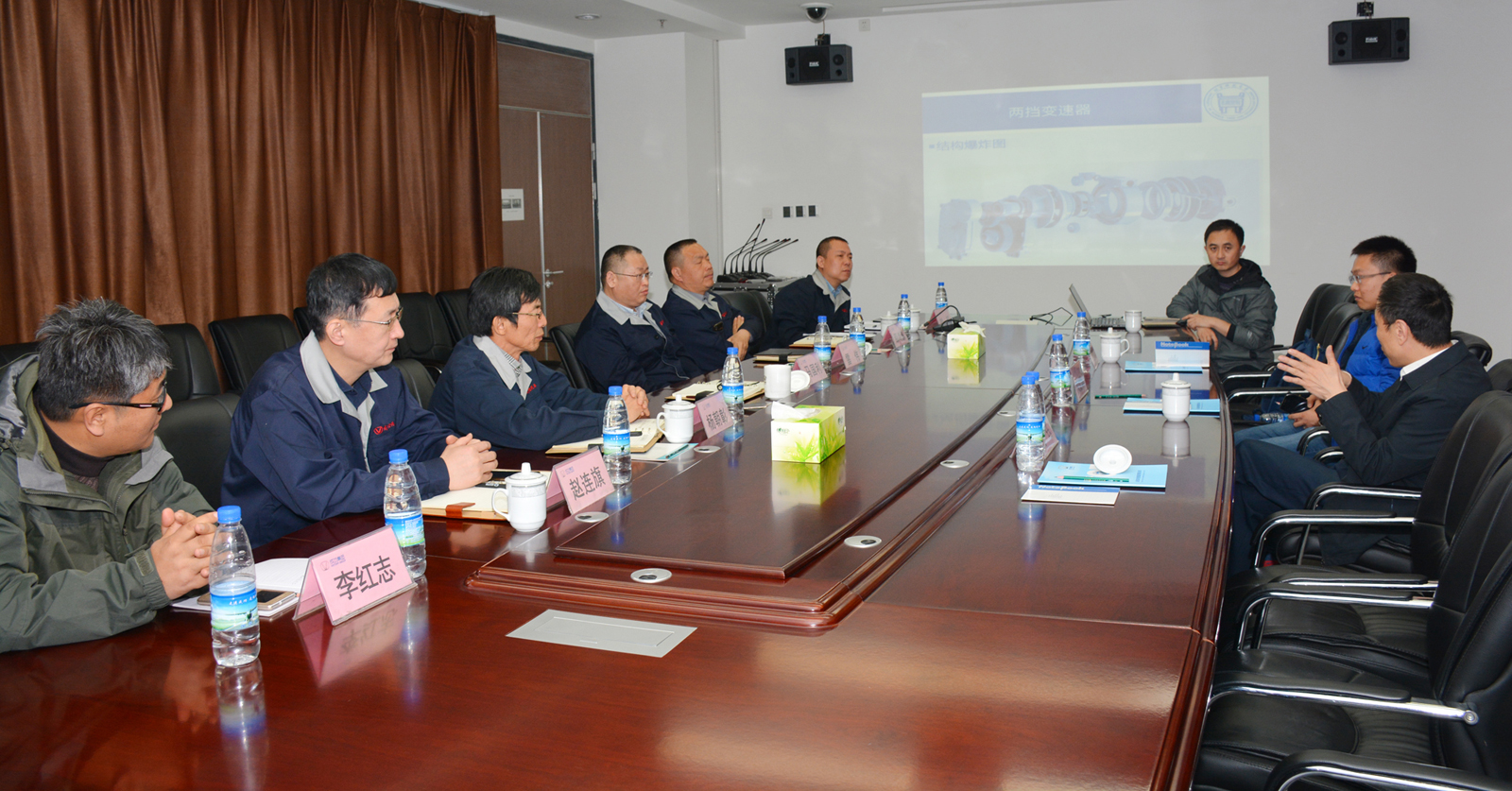 2月28日,北京科技大学张文明教授、杨珏系主任、邵俊凯博士一行三人到成功汽车就双方共同开发电动汽车专用2档变速器项目进行商务洽谈。