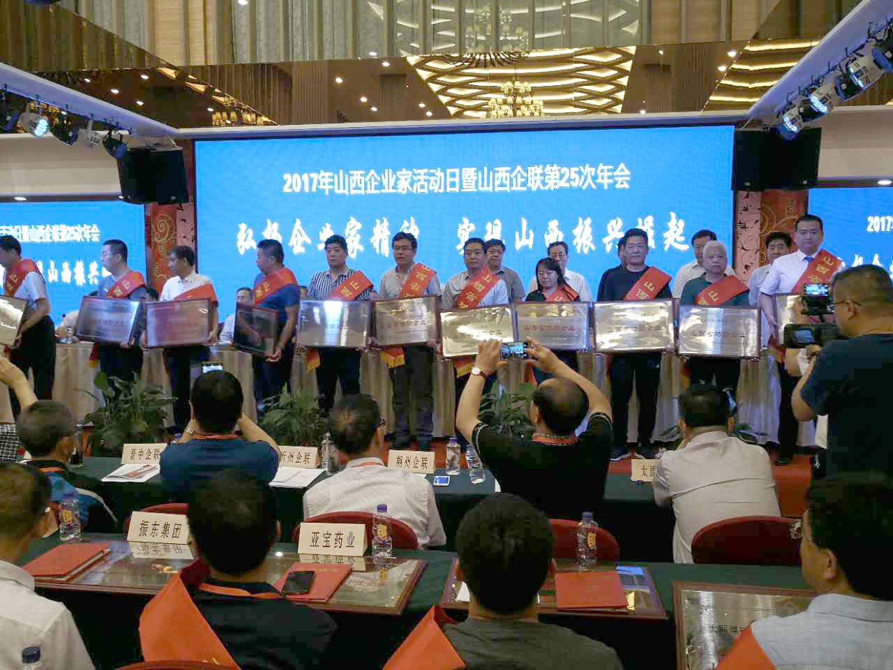会议围绕“弘扬企业家精神、实现山西振兴崛起”主题,贯彻党的十八大和十八届三中、四中、五中全会和习近平总书记系列重要讲话精神,落实中央深改组第三十四次会议通过的《关于进一步激发和保护企业家精神的意见》的具体要求,充分肯定广大企业家不畏艰难、艰苦奋斗、勇于担当的敬业和创新精神,进一步弘扬企业家精神,发挥企业家示范作用,造就优秀企业家队伍,推动全省企业不断取得更新更好的发展。此次会议对2016年为山西省经济社会发展做出突出贡献的企业和企业家进行了命名表彰。106个企业获功勋企业;217个企业获优秀企业;97人获功勋企业家;219人获优秀企业家。会议对受到表彰的企业和企业家给予厚望,要珍惜荣誉、再接再厉,继续弘扬艰苦奋斗、创新发展、爱国敬业、遵纪守法、追求卓越、勇于担当的精神,努力在企业改革发展的征途上创新业、立新功。