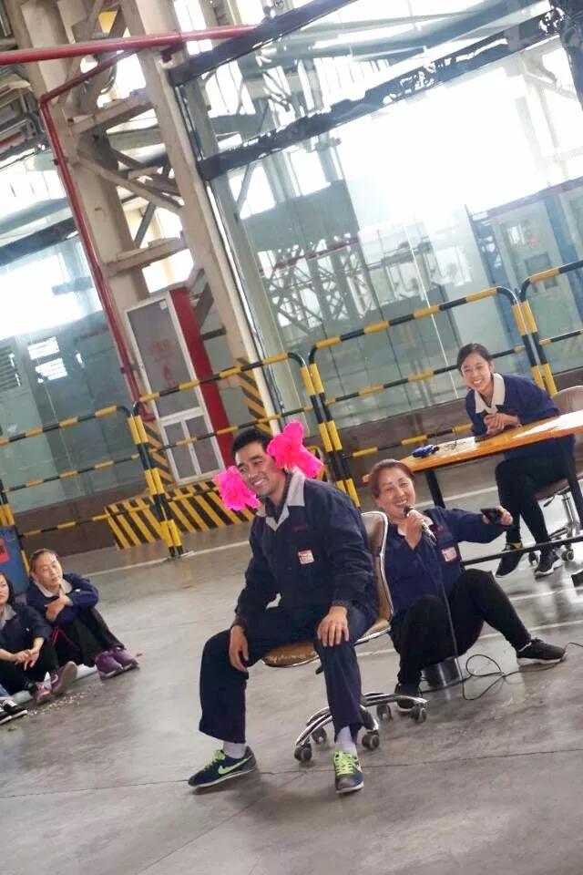 冲压车间员工自发组织的小型联欢虽不及大型的联欢晚会华丽恢宏,但却别具一格、自成风格,充分展示了员工主动参与的积极性,有热情高涨的开场舞《欢聚一堂》;有唱不尽巍巍中华风的《我的中国心》;还有班组自编自演的《双簧》等,节目形式多样、内容丰富多彩、演艺雅俗共赏。特别是表演现场,员工席地而坐自然、随性、爽意、开朗……一张张热情洋溢的笑脸浸透着员工的喜悦,一阵阵节奏欢快的掌声祝福着祖国的华诞,在这个简约暖心的舞台上彰显了平凡岗位上冲压员工的风采,吸引了车厂其他车间员工驻足观看。