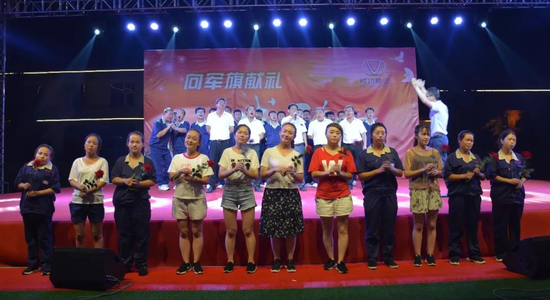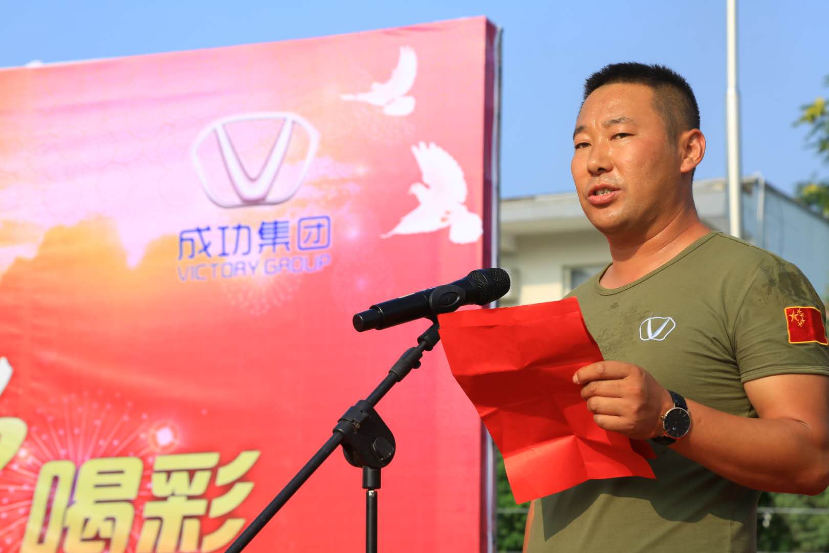 活动在奏唱《中国人民解放军军歌》后举行了分列式表演。国旗护旗队、集团旗护旗队;联盛公司方队、集团联队、焊装方队、涂装方队及特效生方队依次通过观摩台,整齐划一、铿锵有力的步伐亮出了成功人威武的英姿和展示了成功人气宇轩扬、砥砺奋进的时代风貌,引起了全场一阵阵热烈的掌声。《强军战歌》、《战友之歌》、《一二三四歌》、《团结就是力量》嘹亮的歌声回荡在集团总部的上空,各方队合唱、拉歌似排山倒海一浪高过一浪。再一次显示了成功人走进新时代,创造新辉煌的决心和永不服输的英雄气概。原兰州军区空9军36师榆林场站班长、联盛公司供应部部长马小东代表复转军人发了言;原海军航空兵学院二基地司令员、集团航空事业部总经理陈建法代表集团讲了话。他说,今天永利yl23411隆重集会,庆祝“八一”节日,缅怀军队历史,追思军旅岁月。我们要永远铭记,是军队培养了我们,给了我们红色基因、铁血豪情,我们要用这笔宝贵财富,书写永利yl23411美丽乐章;我们要永远铭记,是军队造就了我们,让我们拥有了钢铁意志、不屈精神,我们要用这优秀品质,描绘永利yl23411壮丽蓝图;我们要永远铭记,是军队教会了我们,让我们肩负了责任、担当和勇气,我们要用这钢铁脊梁,担起永利yl23411发展创新和社会担当。他还说,历史的车轮滚滚向前,时代的潮流让我们从军营走进了永利yl23411,为广大复转军人施展才华、建功立业提供了难得的历史机遇和广阔舞台,作为一名成功人,我们要在马国利董事长这面旗帜的感召下,秉承军人雷厉风行、严守纪律,英勇顽强、永不言弃,率先垂范、积极进取的优良作风,为成功的腾飞发展贡献力量,与成功一道走向成功,走向辉煌!