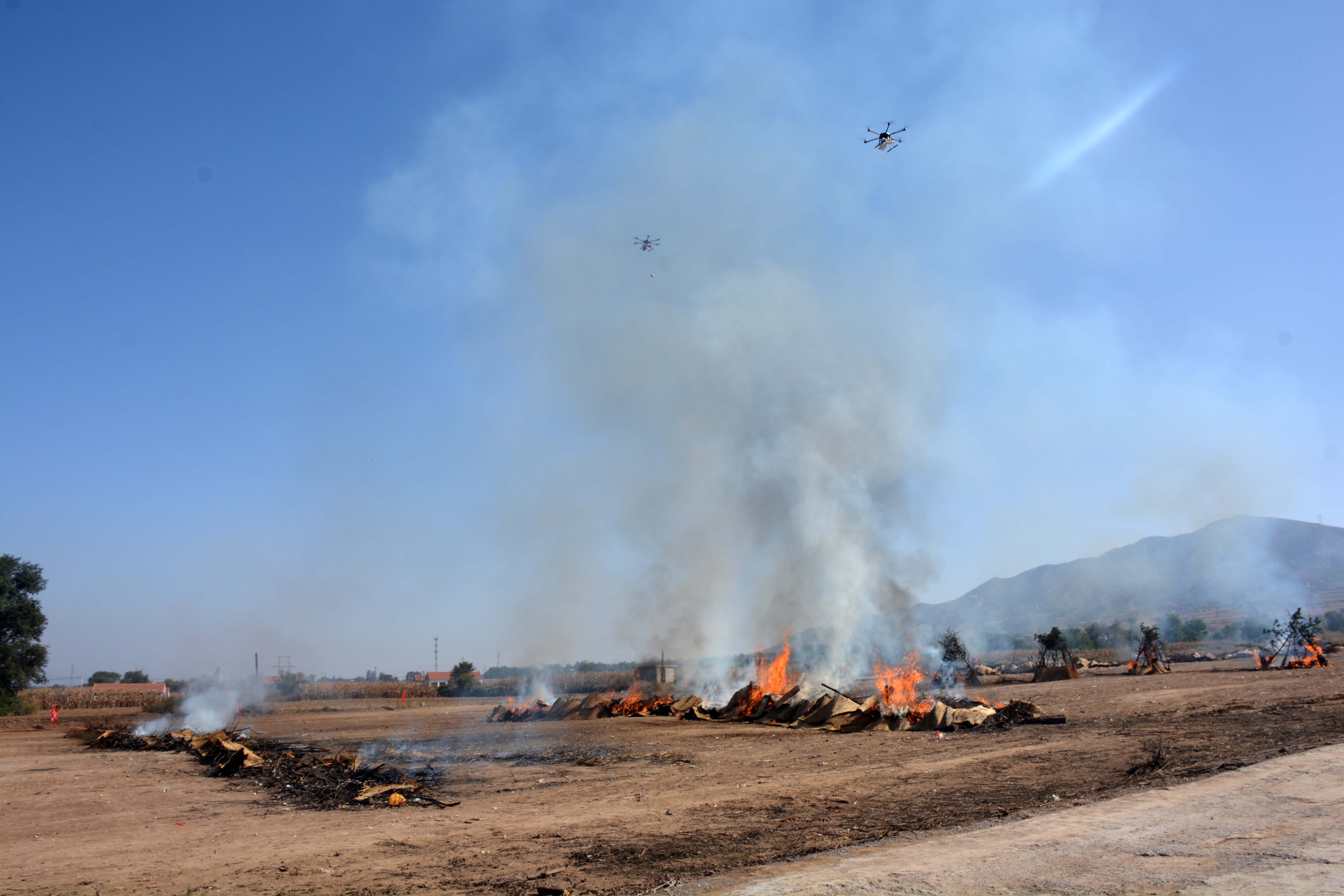 在此次比武演练期间,成功通航三架“画眉鸟”编队灭火表演引起了现场的极大关注。这是长治市在全省首家组建的航空护林灭火机队,演练现场“亮剑”,让人惊叹不已!随着现场总指挥一声令下,成功通航三架航空护林灭火机组编队从长治王村机场基地起飞,不到5分钟的时间就抵达灭火演练现场上空,随着三架雄鹰由远而近的强大轰鸣声超低飞行、确定灭火最佳路径和目标后,机组编队以一字型排列再次俯冲贴地进入最佳灭火区域,随着大量灭火剂喷涌而出划出一道美丽壮观的彩带,瞬间地面上燃烧的熊熊烈火被压制扑灭,后续跟进的飞机对火带周边区域进行了充分的覆盖,彻底隔绝了地面火种“死灰复燃”,进而展现了专业灭火作业的安全化、高效化,博得了现场观摩的阵阵喝彩。