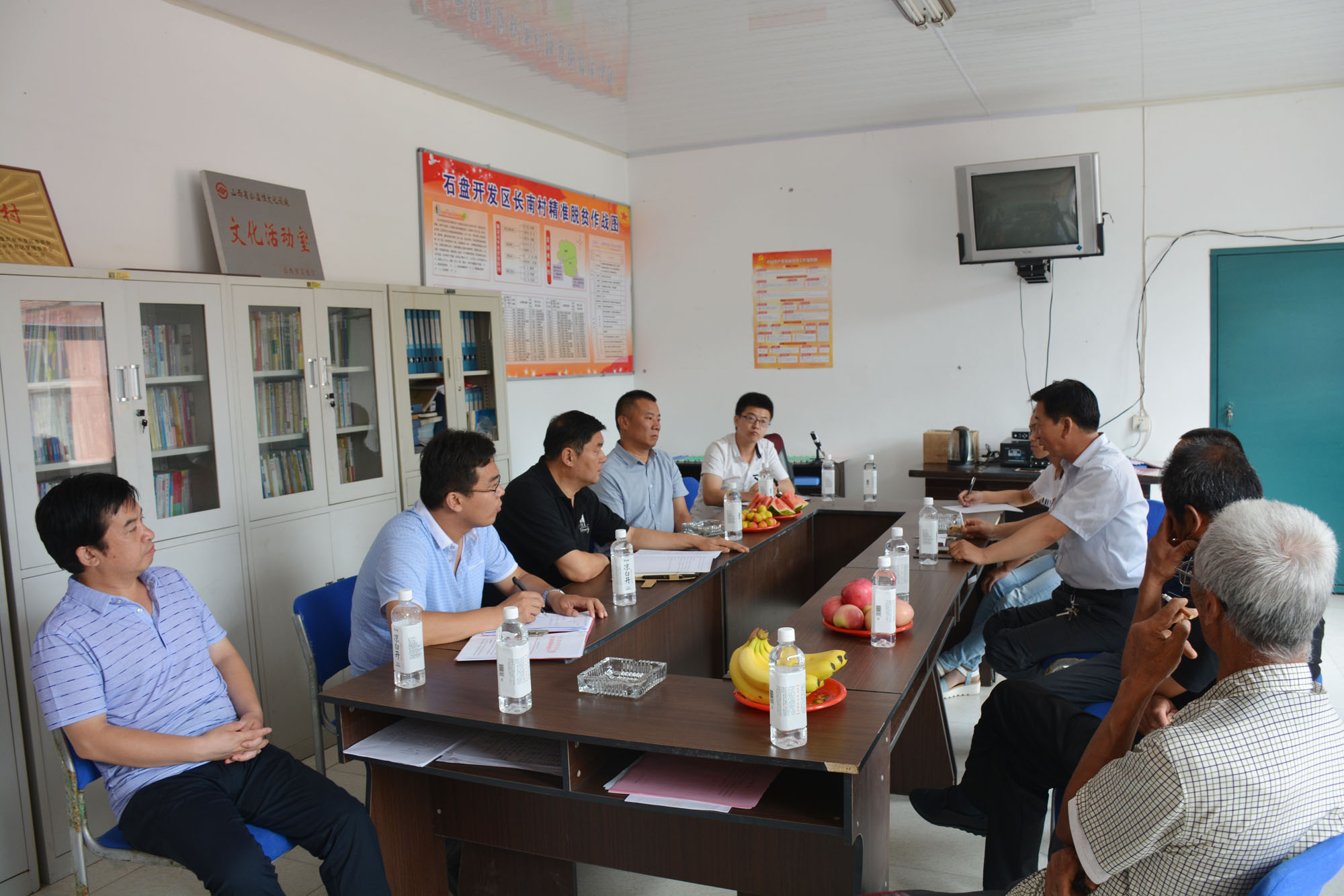 7月4日,集团总裁马国利、总裁助理狄国文率队再度赴武乡县长南村落实对口脱贫帮扶项目,集团综合、文化品牌、规划发展等部门负责人一并随同前往。从集团启程经过近3个小时的旅途颠簸到达武乡县长南村,在村委会办公区受到县石盘农业开发区副书记郝树福、长南村党支部书记秦菲、村委会主任梁建更等人的热情接待。